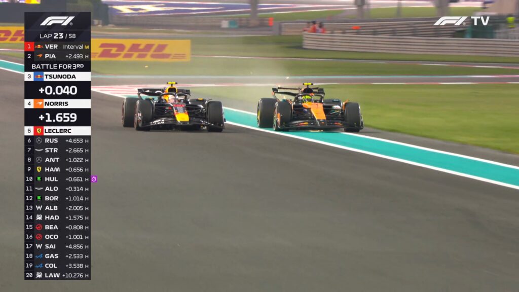 Concernant la course d’Abu Dhabi elle-même, je reste sur ma faim. Si le départ nous a offert quelques frissons avec une belle bataille entre Alonso et Leclerc, le dépassement Piastri sur Norris, la réalisation télévisée a encore failli à sa mission en ignorant les luttes du peloton. On s’est ennuyé ferme devant un spectacle trop platonique.