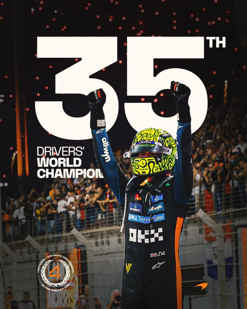 Lando n’est pas le genre de champion qui me fait vibrer, ni par ses déclarations parfois maladroites, ni par son style en piste qui manque à mes yeux du panache des plus grands. Je le félicite pour sa saison, mais il restera pour moi un champion de transition plutôt qu’une légende instantanée, j’espère à l’avenir qu’il me donnera tort.