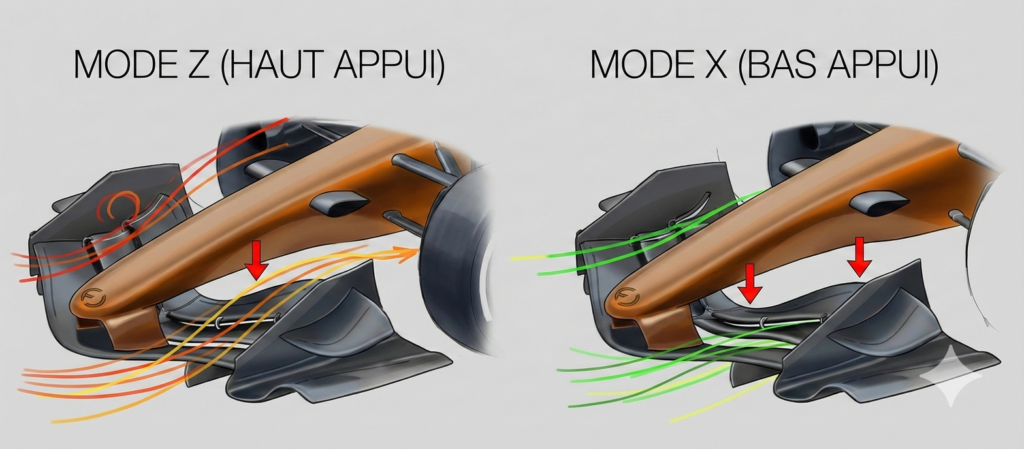 Jusqu’à présent, on connaissait le DRS (l’aileron arrière qui s’ouvre pour doubler). En 2026, c’est fini. À la place, les ailerons avant et arrière bougent en permanence pour tout le monde, selon deux modes :